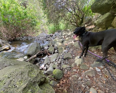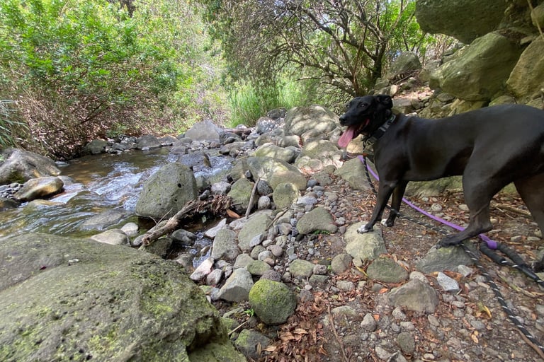 Update -> we had our 3rd session with Brock today in Iao Valley & what magic! We were around Midnight's biggest triggers (other dogs, kids & chickens) and he was a champ. Then, we took this dog, who's scared of the water, to cross the stream and up into the other side and again, he was an absolute star! The moment I saw my boy have the courage to follow me into this fast flowing water he'd never seen before and swim like it was nothing made me want to cry. And on our way back he even passed me in the water as though to say "Come on Momma you too slow!" 😄 Midnight & I left Iao do much more confident, me more educated & with even more trust that I'm going to bring out the best in him & we'll be able to lead a really amazingly fulfilling and fun life together here having some very exciting adventures. All thanks to Brock! Really, don't hesitate, just call him, have a chat & see for yourself how much he'll put you at ease from the get go.''