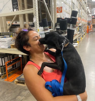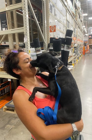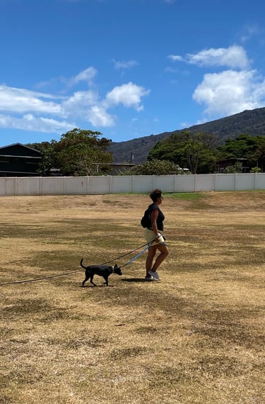 ''My father was killed by a pack of dogs (not his) and so I unexpectedly inherited his rescue poi dog, Buddy. Poor Buddy had been locked in a closet for a couple of days before I came to get him because my dad’s yard wasn’t fenced in, so when he went out for what he thought was just a quick trip he left him in the closet. In the grief and suddenness of my dad’s death we didn’t realize Buddy was at the house and trapped. All this to say both myself and Buddy had been through some recent trauma when we met Brock. Truly Brock lived up to his name and immediately helped both Buddy and I find a way to live harmoniously together. Buddy is now such a good dog. At the time we needed help I was at my wit’s end with his constant jumping and mouthing and unwillingness to listen and because of the circumstances surrounding my dad’s death (even though Buddy had nothing to do with it) I was worried about having him around our other pets and my children. Thanks to Brock’s help and training we have been able to fully welcome Buddy into our ‘ohana and can’t imagine not having him as a part of our lives. Mahalo Maui Dog Whisperer!''